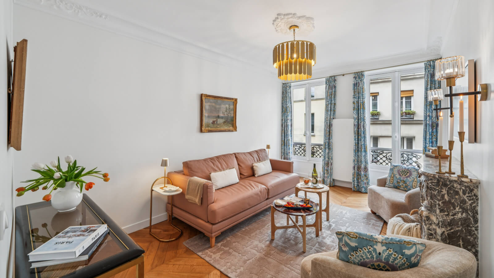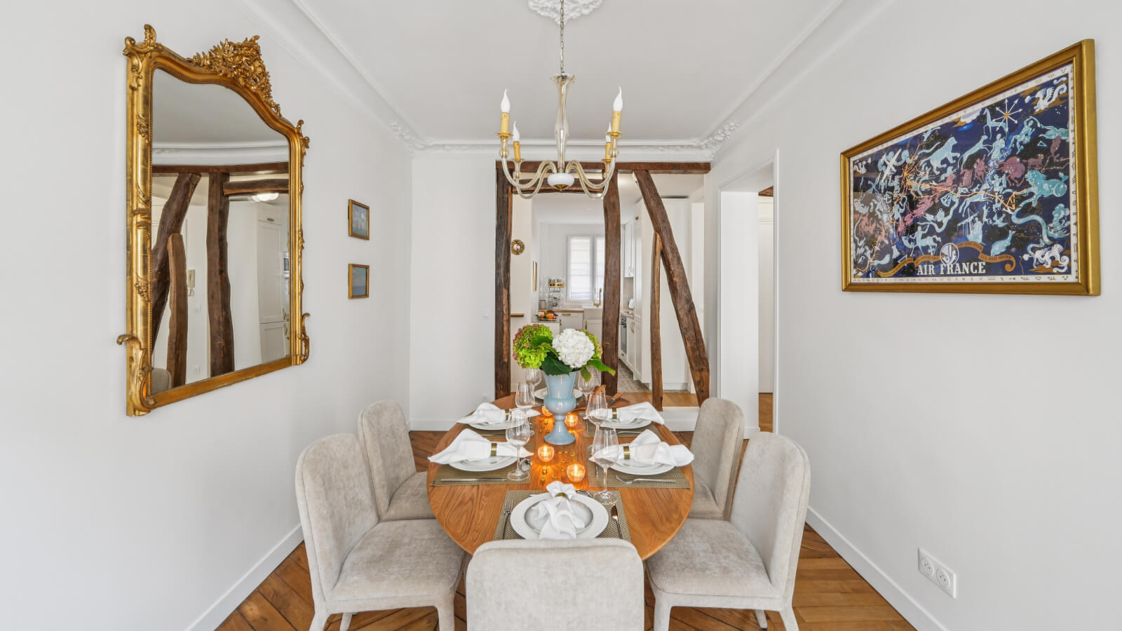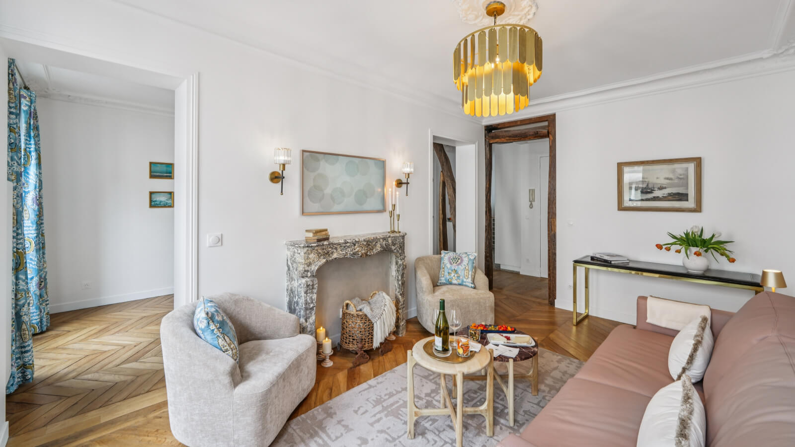 Located in the fashionable Parisian historic district of Le Marais, Maison Rivoli is a luminous two-bedroom residence that blends timeless Parisian chic with classic elegance. Professionally designed interior spaces, impeccable finishes, and a sought-after location make this spacious pied-à-terre a gem for those seeking stylish living in the heart of Paris.