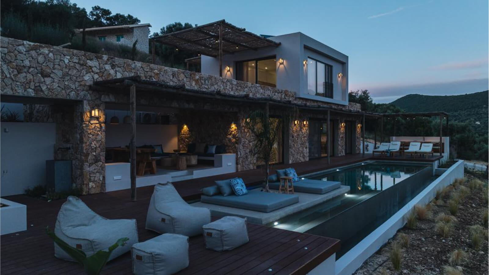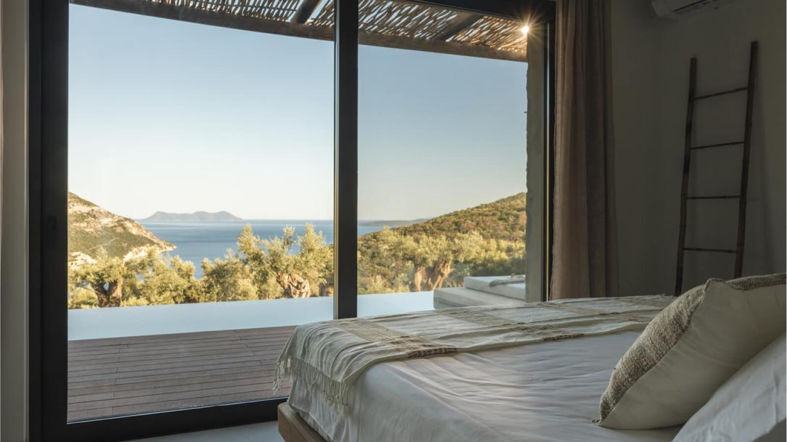 This beautiful villa in Poros offers privacy and direct access to Mikros Gialos Bay—one of Lefkada’s most picturesque beaches. Lefkada, often referred to as the “Caribbean of Greece,” is renowned for its turquoise waters, which attract divers, windsurfers, and watersports enthusiasts. The island’s mountainous landscape also offers endless walking trails, waterfalls, and traditional tavernas alongside its stylish beach bars, making it one of the most sought-after destinations in the Ionian Sea.
