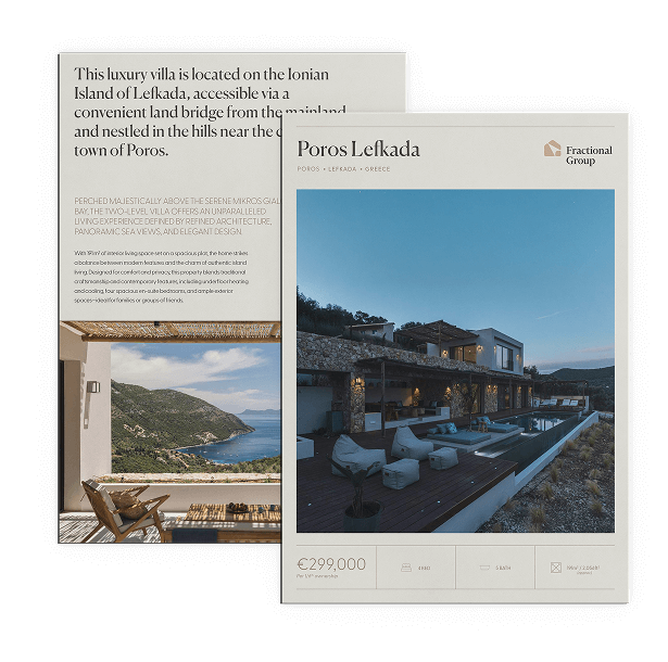 Perched above the turquoise waters of Mikros Gialos Bay, this luxury modern villa in Poros, on the Greek island of Lefkada, offers a rare opportunity for co-ownership in one of the Ionians’ most captivating settings.